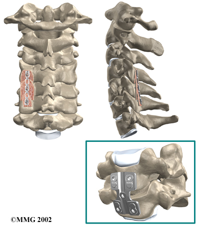 The bone graft needs time to heal in order for the fusion to succeed. This requires the neck to be held still. After cervical fusion surgery, patients usually have to wear a special neck brace for several months. These neck braces are often bulky and restrictive. Recently, surgeons have begun using metal plates and screws (often referred to as instrumentation) to lock the bones in place. The instrumentation is fastened to the vertebrae, where it holds the bones still while the graft heals.
