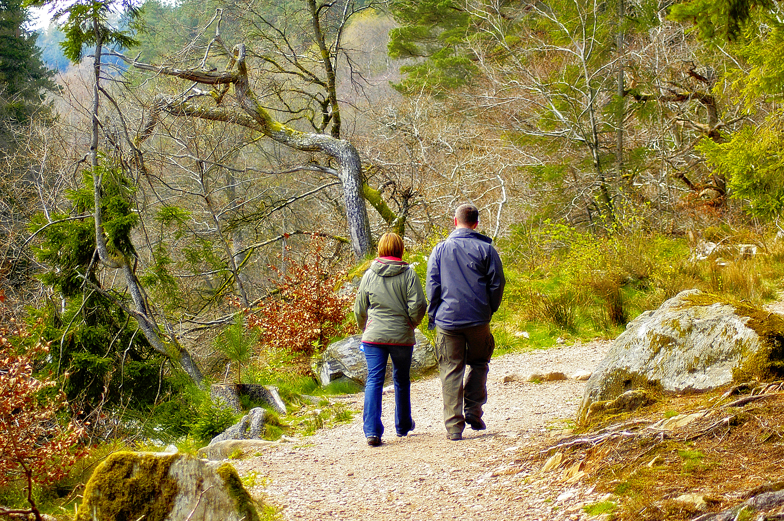 Keep your hands relaxed and slightly cupped. If you are using walking poles (see Guide for Selecting Walking Equipment) then keep a firm but not tensed grip on the pole handles. In addition to keeping your hands relaxed, work to keep your shoulders from rising up towards your ears. Rather, keep your shoulders back and in a slightly downward position while keeping your chest up. Ensure you also keep your head up and look where you are going; aim to look approximately 10-15 stride lengths ahead of you.